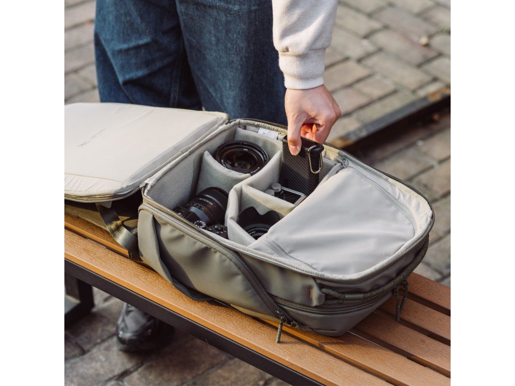 Priestor pre fotografické vybavenie Zipovaný horný priestor Magnetické zatváranie pre rukáv na notebook/iPad (16L sa zmestí do notebooku do 14 palcov, 22L sa zmestí do ultrabooku do 16 palcov) Vyhradené vrecká na batérie Bočné vrecká na statív, fľašu na vodu, dáždnik atď.