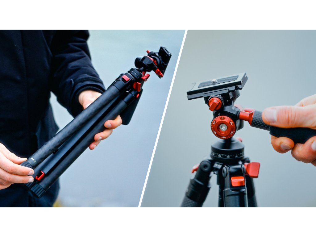 Ľahká a prenosná karbónová konštrukcia – hmotnosť približne 0,9 kg, dĺžka po zložení 42,8 cm