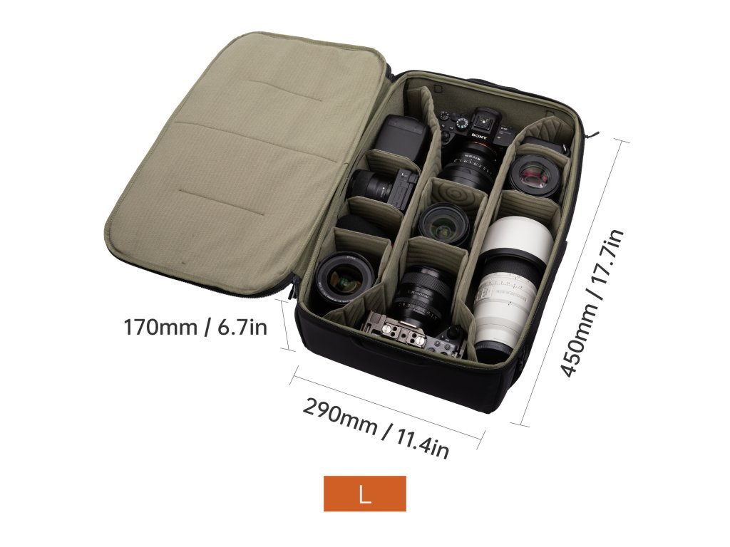 *Veľkosť L neobsahuje ramenný popruh, odporúča sa používať výhradne ako insert