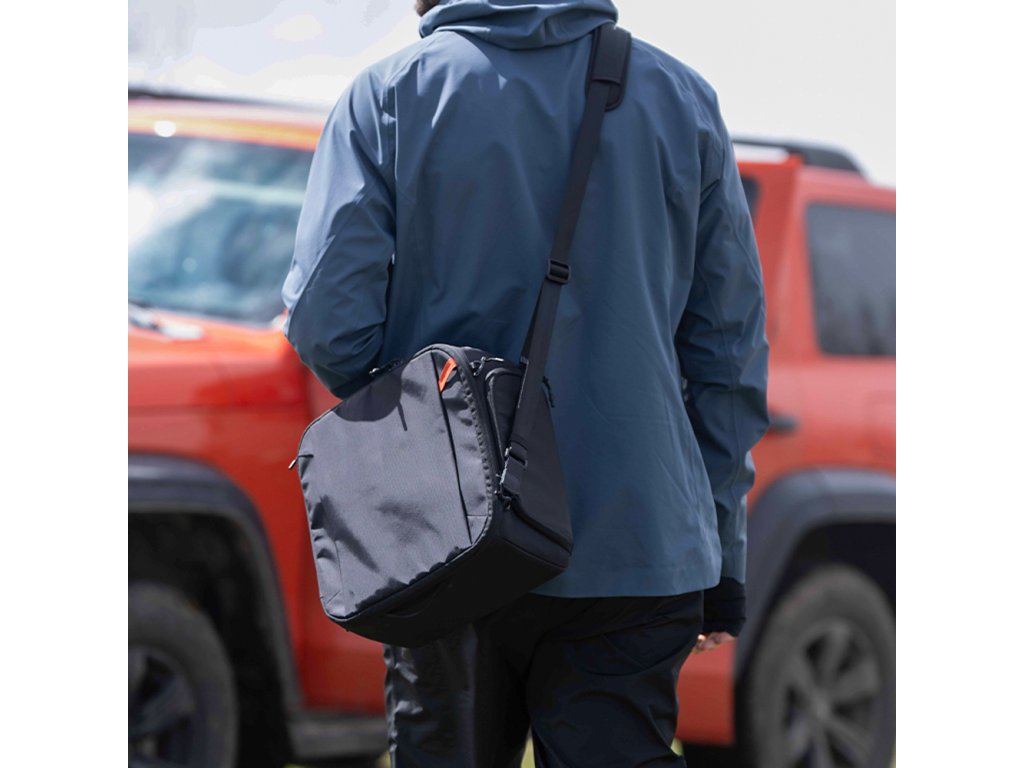 Taška je dodávaná s ramenným popruhom, ktorý ju kedykoľvek premení na ramennú tašku na fotoaparát