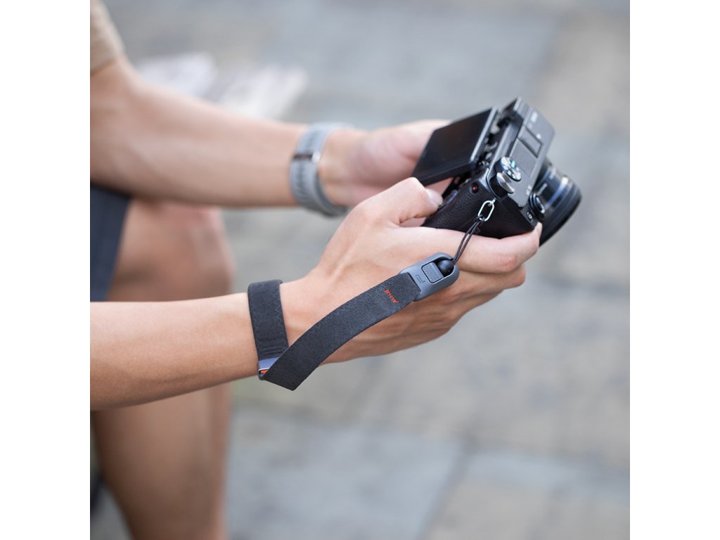 Popruh sa automaticky zabezpečí okolo zápästia, ak vám fotoaparát náhodne vypadne.