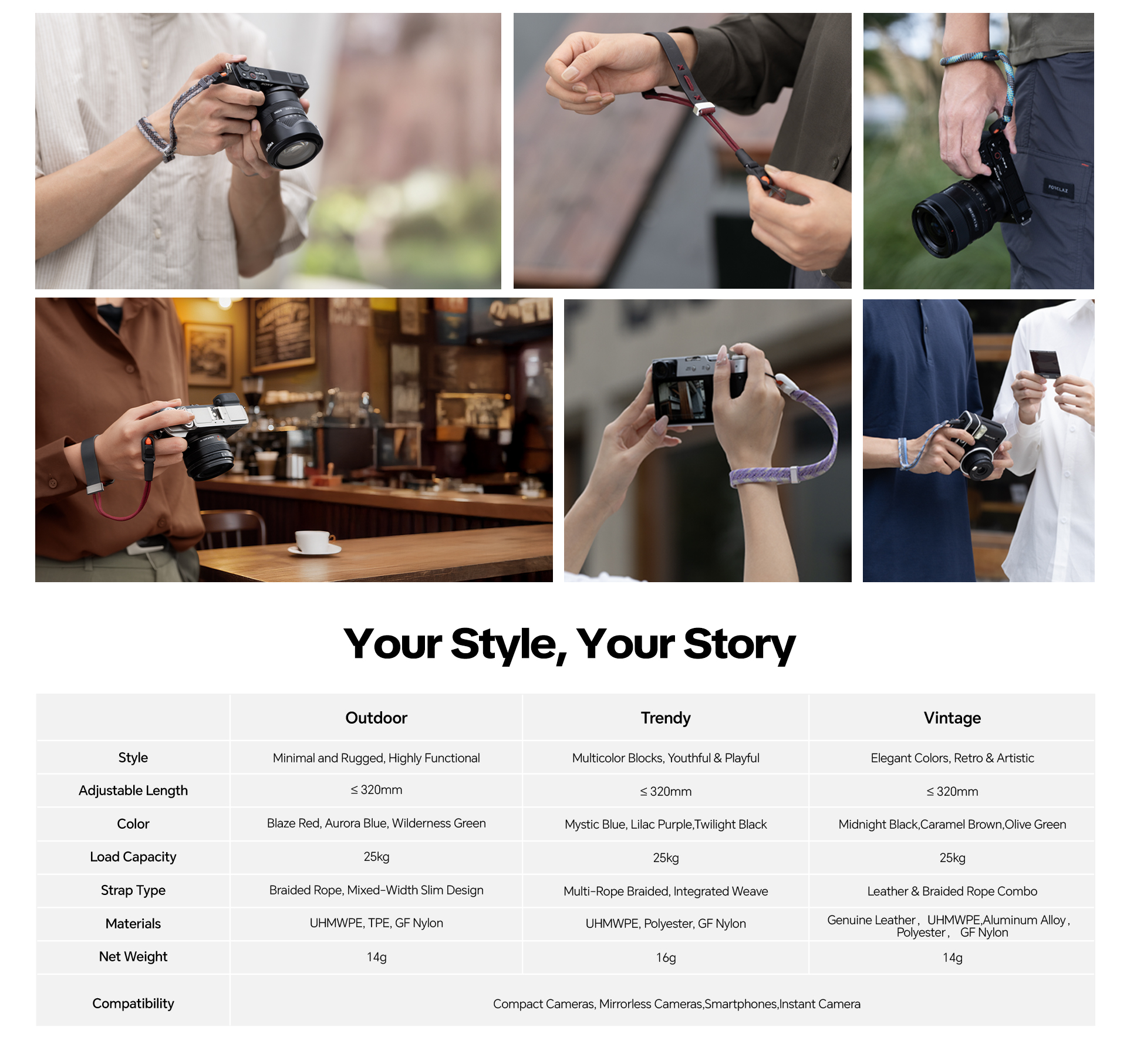 Kombinuje luxusný vintage dizajn s praktickými funkciami – ponúka istotu, pohodlie a štýl v kompaktnom formáte, ktorý dokonale doplní váš fotoaparát aj osobný štýl.
