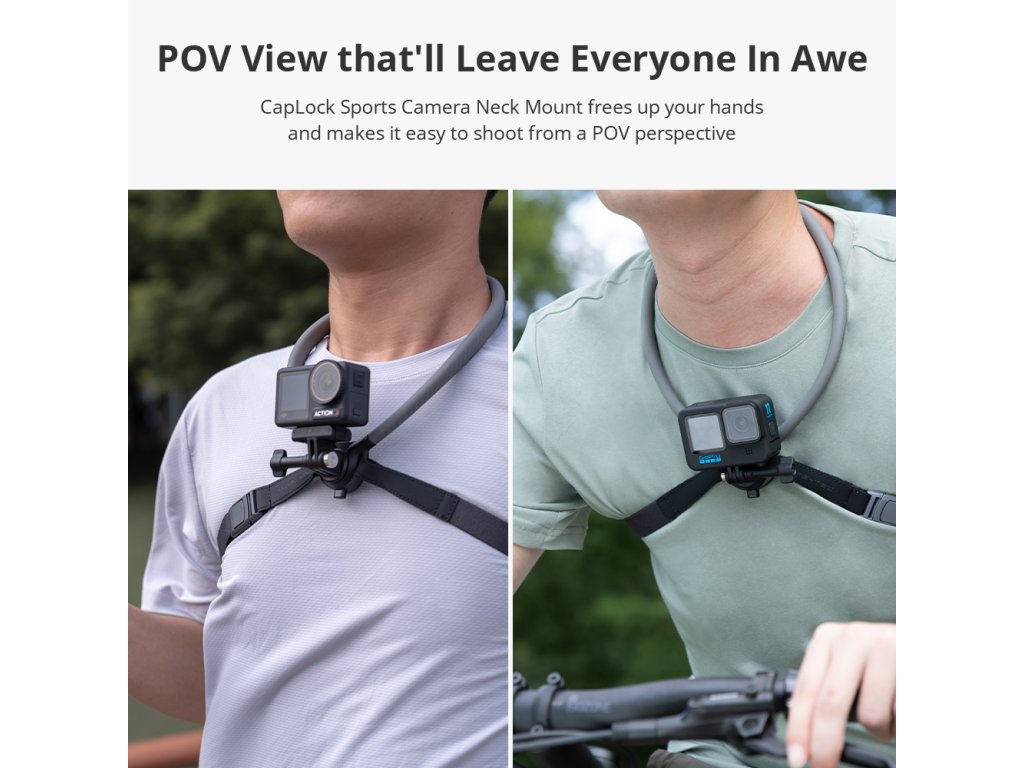 Univerzálny a stabilný držiak PGYTECH CapLock™ Action Camera Neck Mount Max je navrhnutý na pohodlné umiestnenie akčnej kamery pozdĺž krku – umožňuje zachytiť zábery z blízka, spodné uholy či efektné POV zábery bez použitia rúk.
