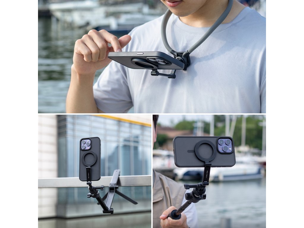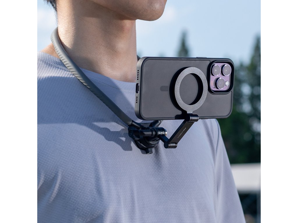 Prémiový držiak PGYTECH CapLock™ Magnetic Smartphone Neck Mount Max kombinuje rýchloupínací CapLock™ systém a magnetickú fixáciu pre stabilné uchytenie smartfónu priamo pred vaším krkom. Ideálny pre vlogovanie, natáčanie hands-free, pohybové zábery či kreatívne POV zábery bez držania v ruke.