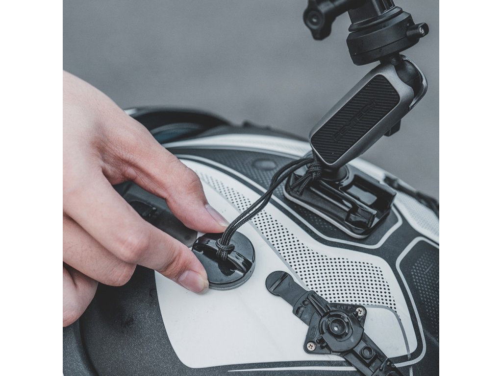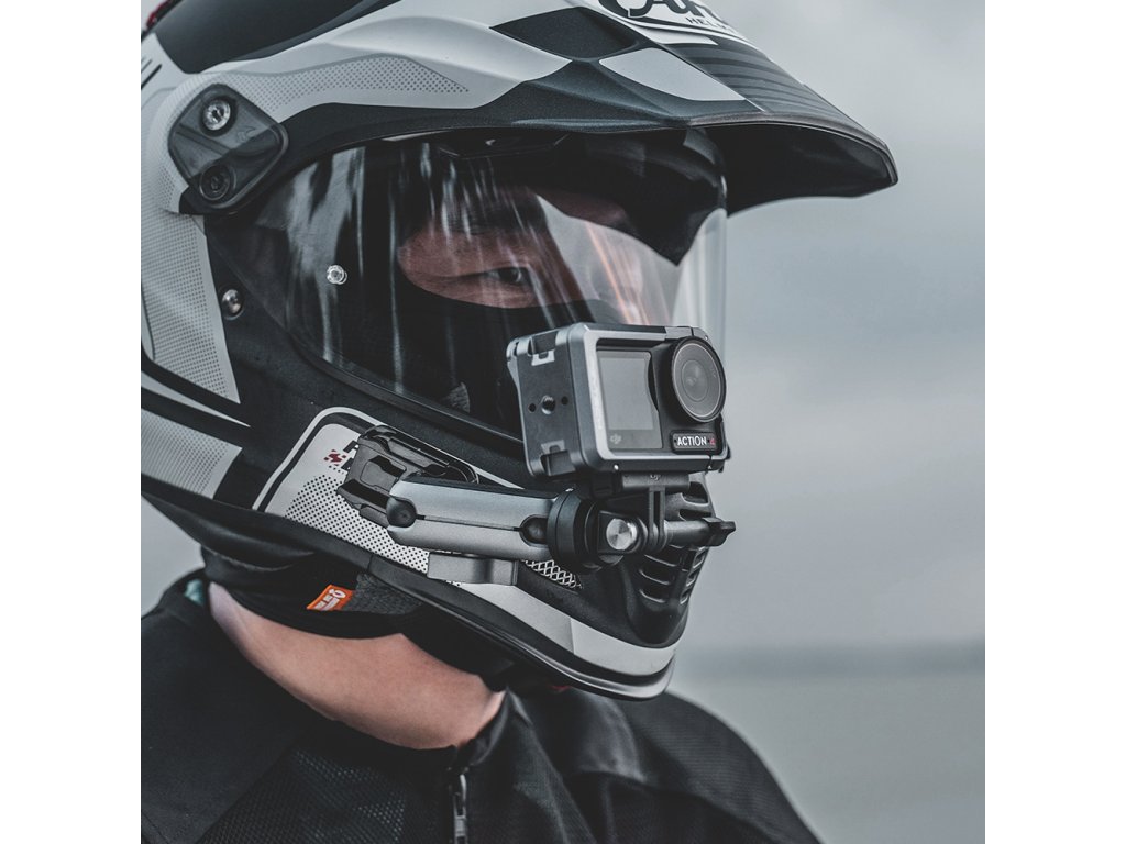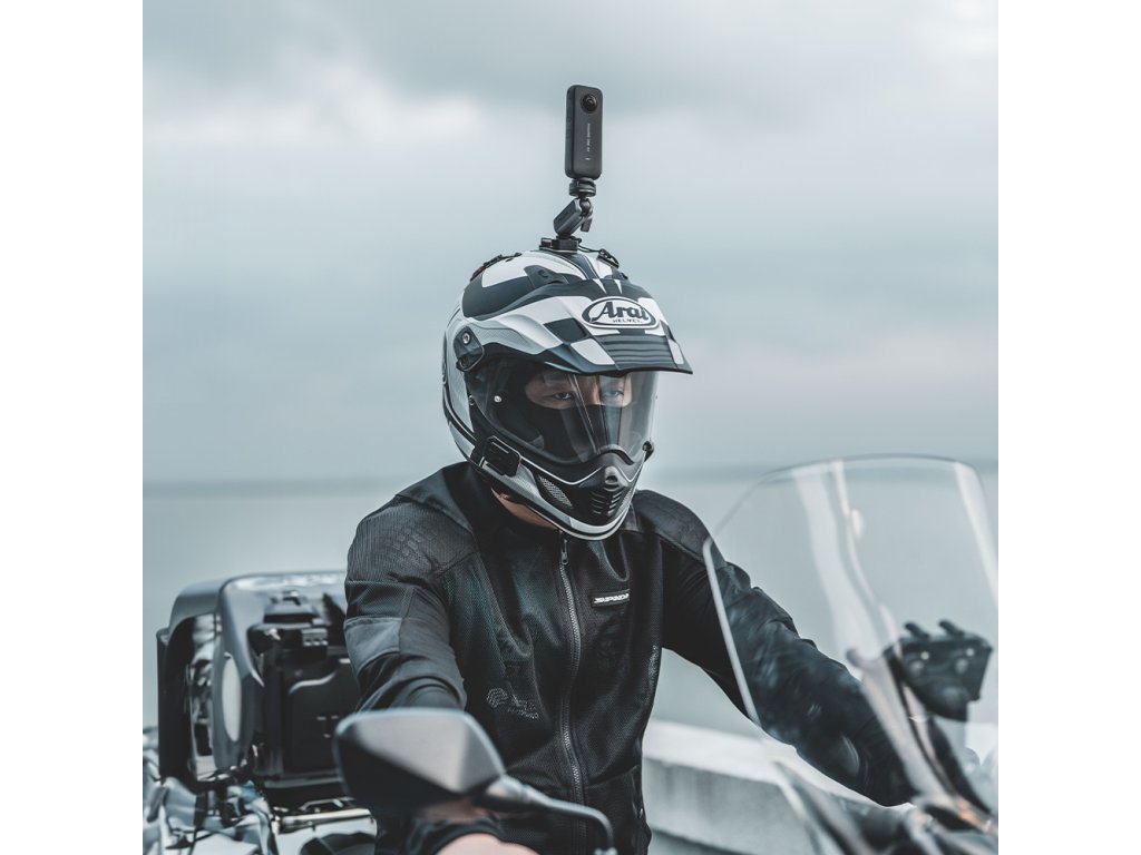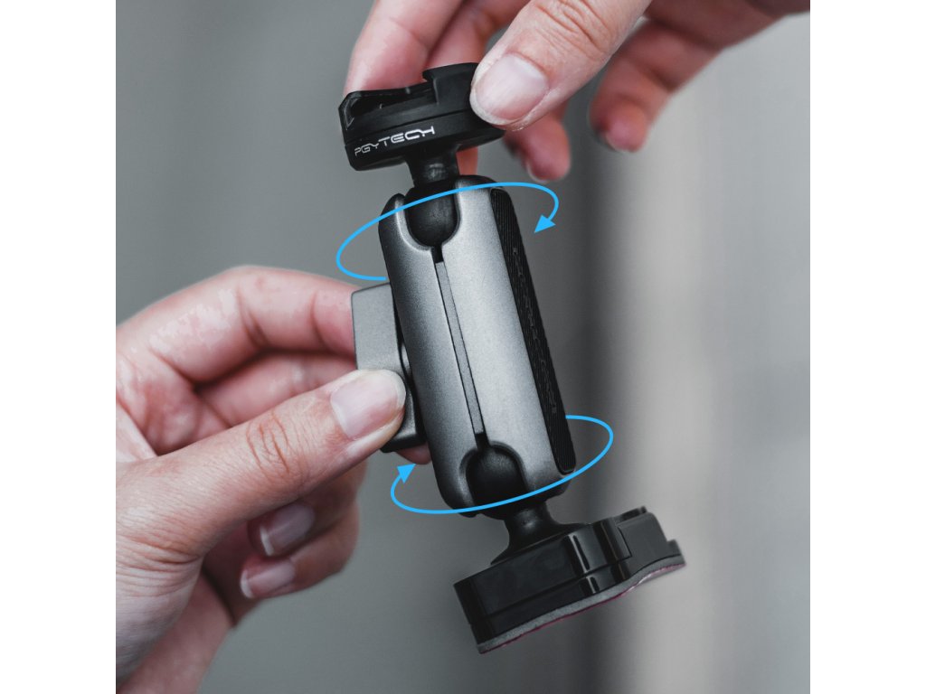 Držiak je vybavený dvojitou guľovou hlavou s rotáciou 360°, ktorá poskytuje úplnú slobodu pri nastavení ideálneho uhla záberu. Vďaka tomu môžete natáčať z perspektívy prvej osoby a zachytiť autentický pohľad z jazdy či športovej aktivity.