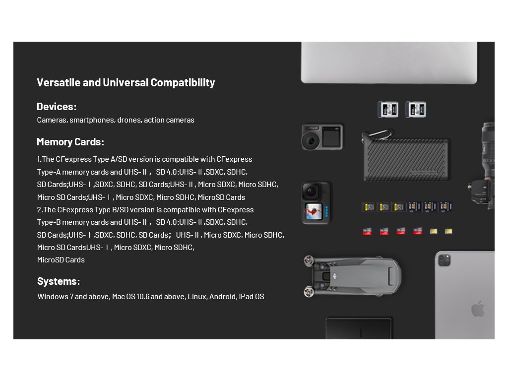 Kompaktný a výkonný čítačkový box PGYTECH CreateMate Type A/SD kombinuje priestor na ukladanie pamäťových kariet s vysokorýchlostným prenosom dát. Ideálne pre fotografov, videomakerov a tvorcov, ktorí potrebujú rýchly prístup k dátam aj spoľahlivú ochranu.
