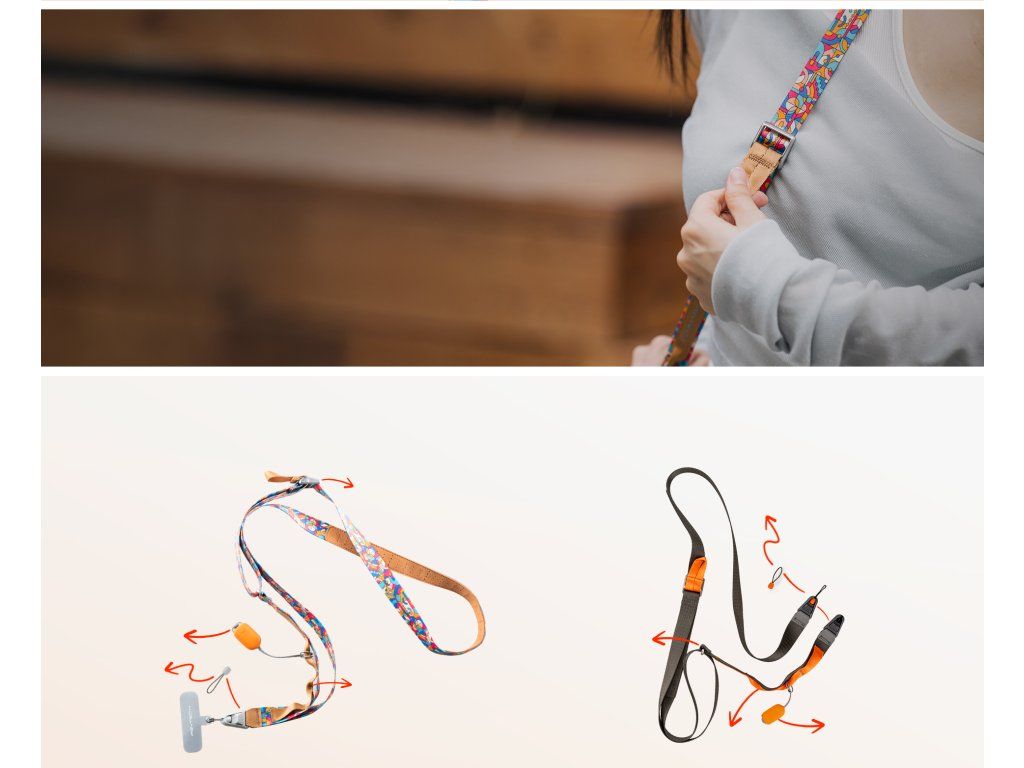 • Nastaviteľná dĺžka pre nosenie na krku, cez rameno alebo crossbody