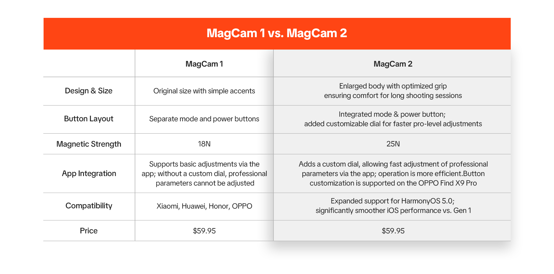 PGYTECH MagCam 2 Phone Grip (Classic Black) je prémiový magnetický grip pre smartfóny, navrhnutý pre tvorcov obsahu, vlogerov a používateľov, ktorí chcú mať pri fotografovaní a natáčaní videí lepšiu stabilitu, kontrolu a komfort. Vďaka magnetickému systému umožňuje rýchle a bezpečné uchytenie telefónu bez potreby mechanických svoriek, čo výrazne zjednodušuje každodenné používanie.