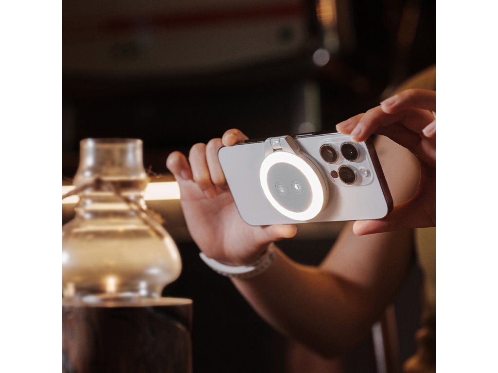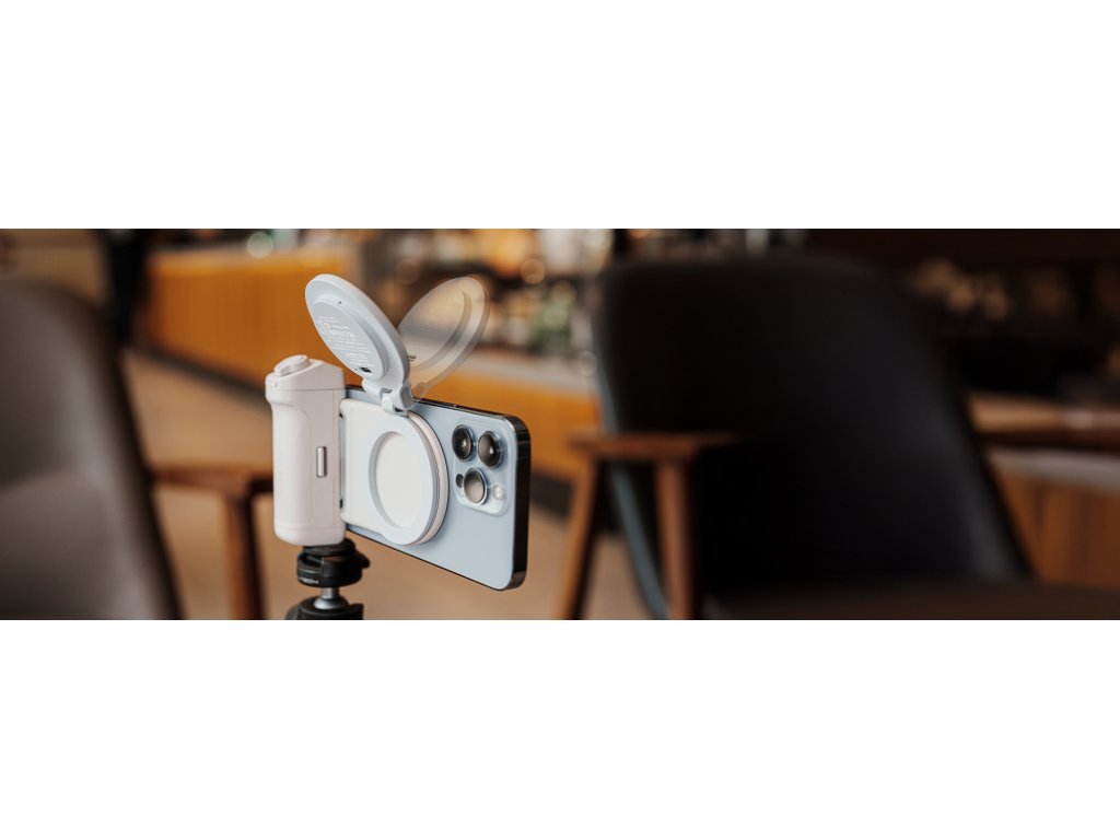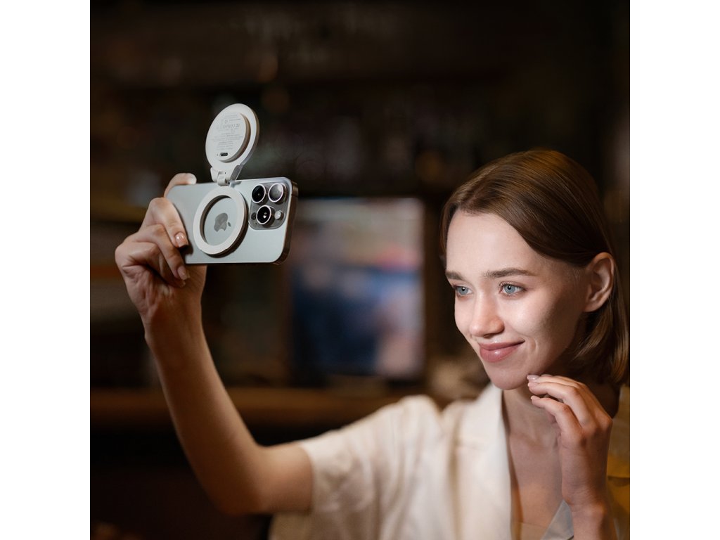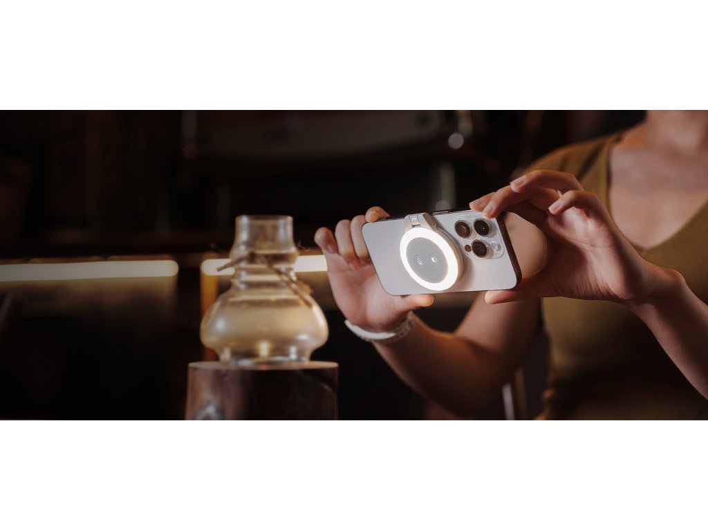 „Vyplňovacie“ svetlo (fill light) sa dá ľahko pripevniť na telefóny alebo obaly kompatibilné s MagSafe, na kovové povrchy alebo na PGYTECH MagCam Phone Grip.