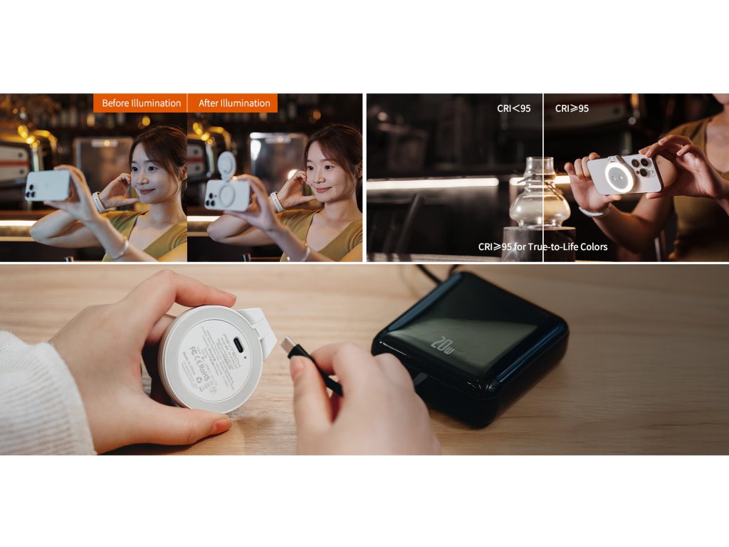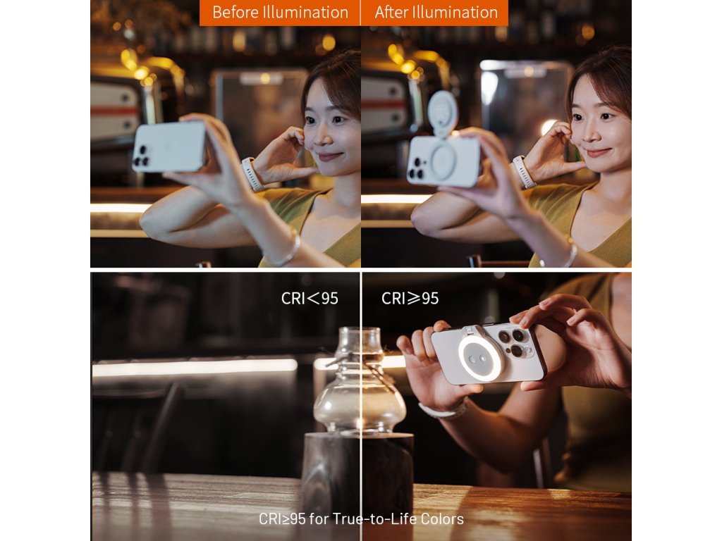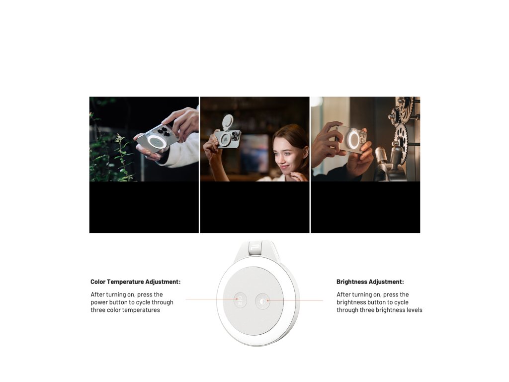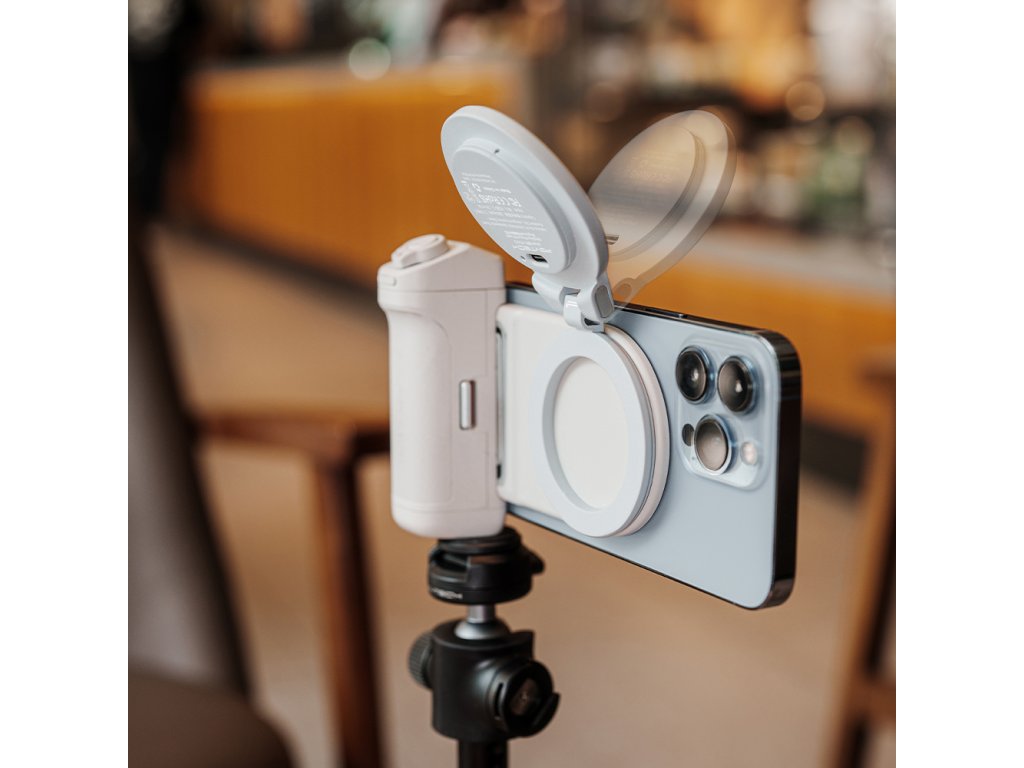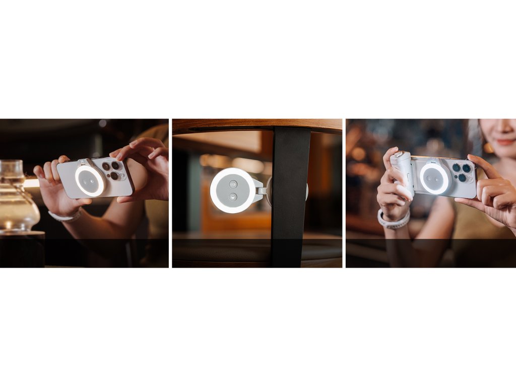 „Vyplňovacie“ svetlo (fill light) sa dá ľahko pripevniť na telefóny alebo obaly kompatibilné s MagSafe, na kovové povrchy alebo na PGYTECH MagCam Phone Grip.