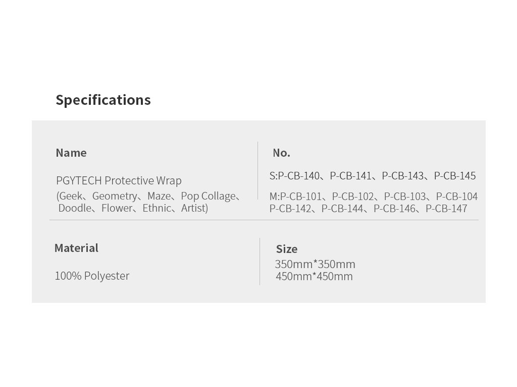 PGYTECH Protective Wrap vo veľkosti M v dizajne Maze je univerzálny ochranný obal určený na bezpečné prenášanie a skladovanie fotoaparátov, objektívov, dronov, tabletov, filtrov, svetiel alebo iného elektronického vybavenia. Vďaka mäkkému, ale pevnému materiálu chráni techniku pred škrabancami, prachom a drobnými otrasmi, pričom zostáva ľahký a skladný.