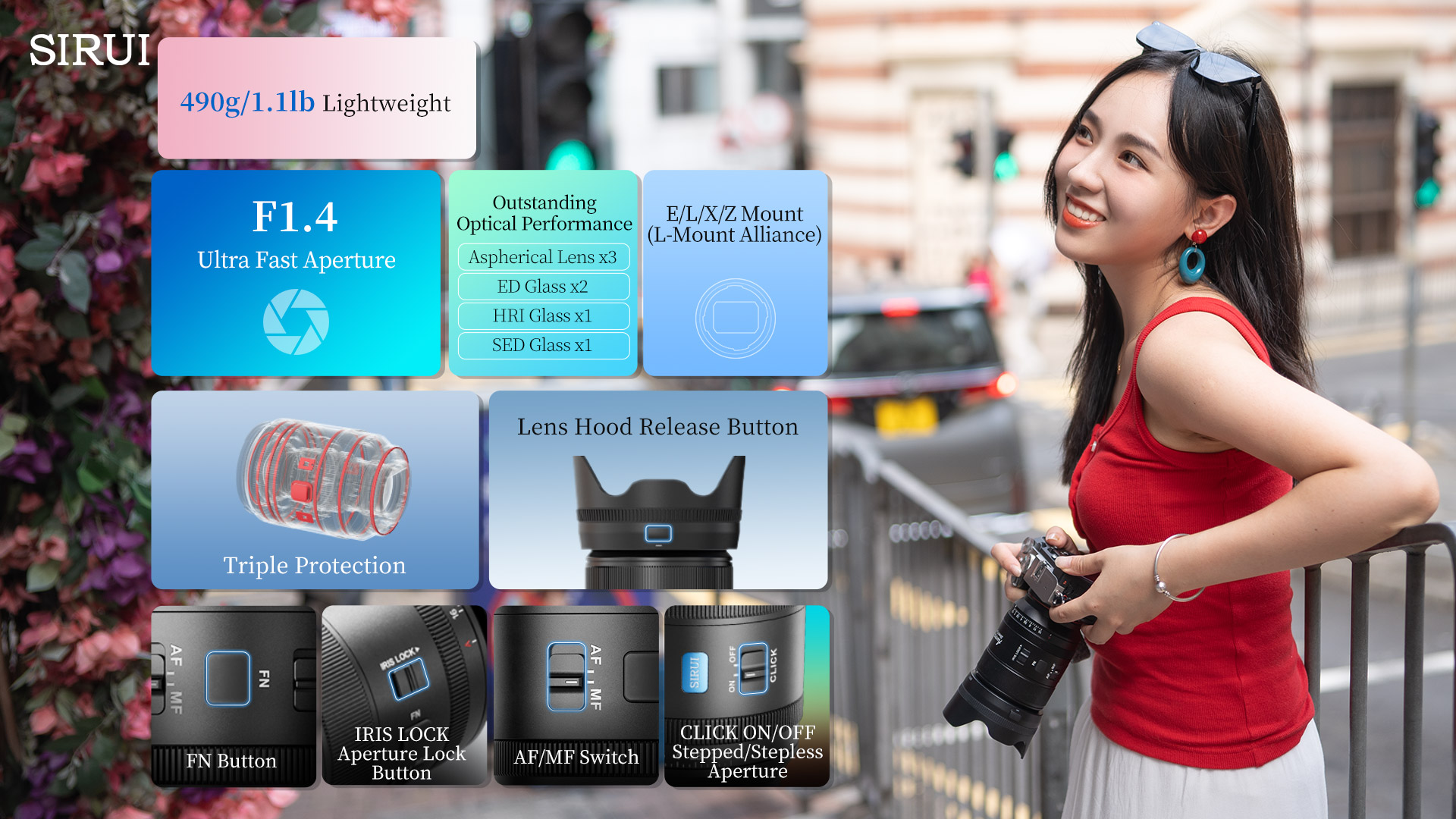 SIRUI AURORA 35mm F1.4 je súčasťou novej série objektívov navrhnutých pre full-frame mirrorless fotoaparáty. Vďaka univerzálnej ohniskovej vzdialenosti 35 mm, vysokej svetelnosti F1.4 a rýchlemu automatickému ostreniu je ideálny pre fotografov aj filmárov, ktorí hľadajú spoľahlivý a kreatívny nástroj v kompaktnom prevedení.