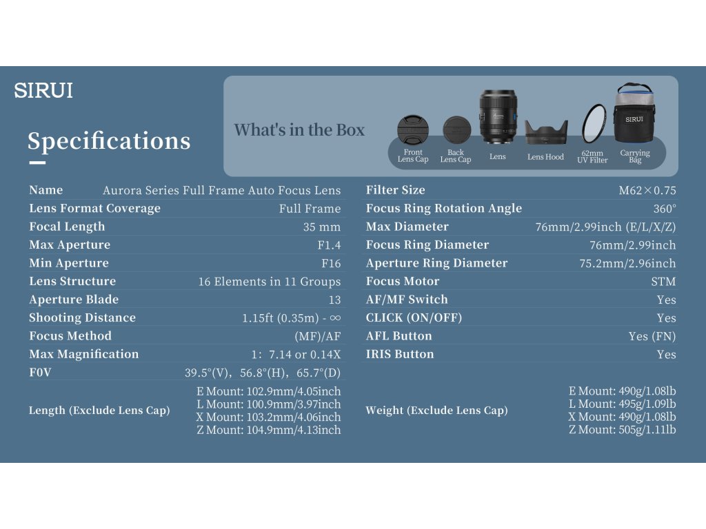 SIRUI AURORA Series 35mm F1.4 Full-Frame Autofocus Lens