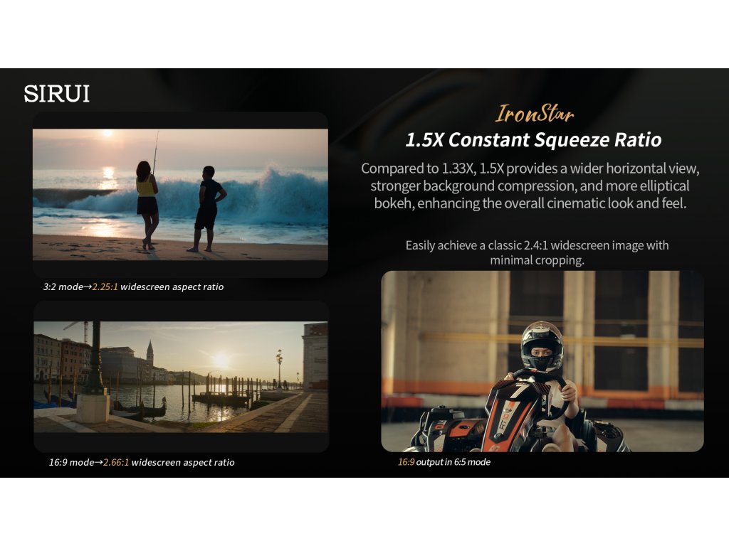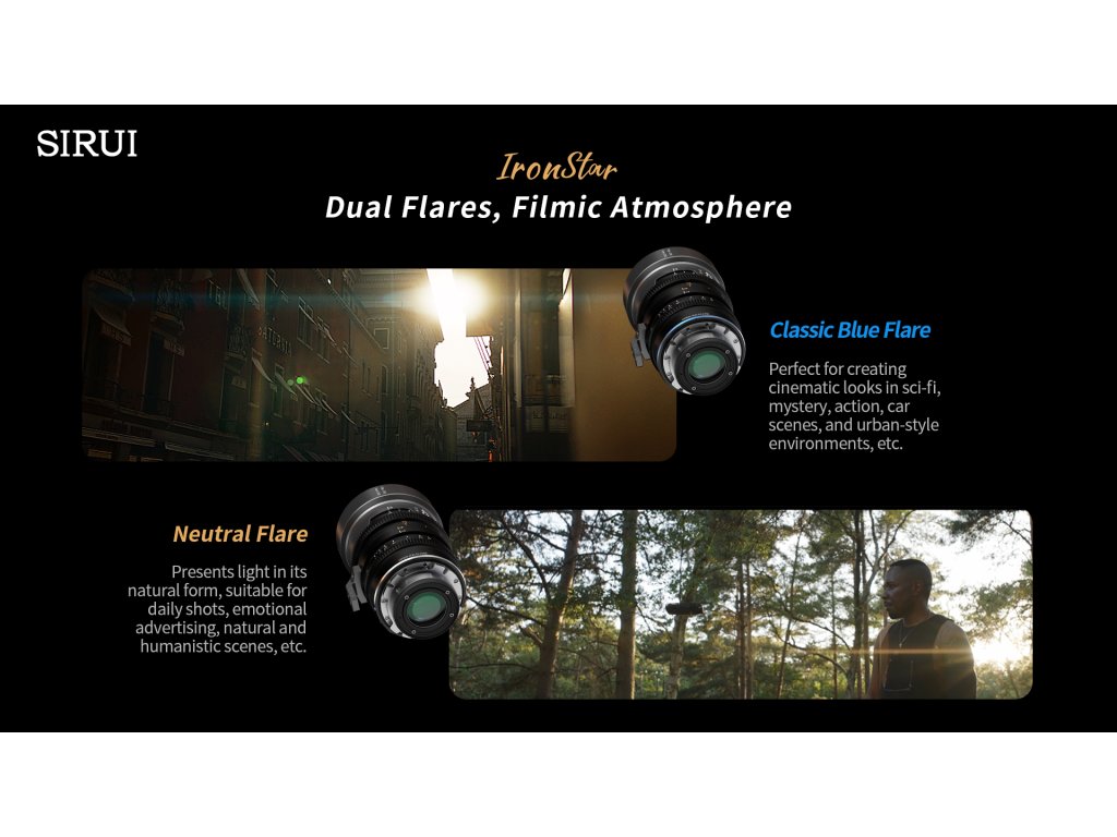Tento 35 mm objektív poskytuje anamorfický pomer 1.5×, ktorý vytvára výrazný filmový obraz s pomerom strán 2.66:1 (16:9 snímač) alebo 2.25:1 (3:2 snímač). Svetelnosť T1.9 umožňuje natáčať aj v nízkom osvetlení, s výrazným oddelením objektu od pozadia a hlbokým, jemne oválnym bokehom. IronStar využíva pokročilú optickú konštrukciu pre vysoký mikrokontrast, minimálne aberácie a jemné, kontrolované fláre – dostupné vo verzii Blue Flare alebo Neutral Flare.