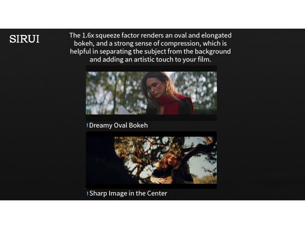 SIRUI Saturn 1.6x Carbon Fiber Full-frame Anamorphic Lens Set (50mm + 75mm) je profesionálna sada dvoch prémiových anamorfických objektívov pre full-frame fotoaparáty. Táto kompaktná a ľahká dvojica kombinuje vysokú optickú kvalitu, filmový vzhľad a výnimočne nízku hmotnosť vďaka konštrukcii z uhlíkových vlákien.