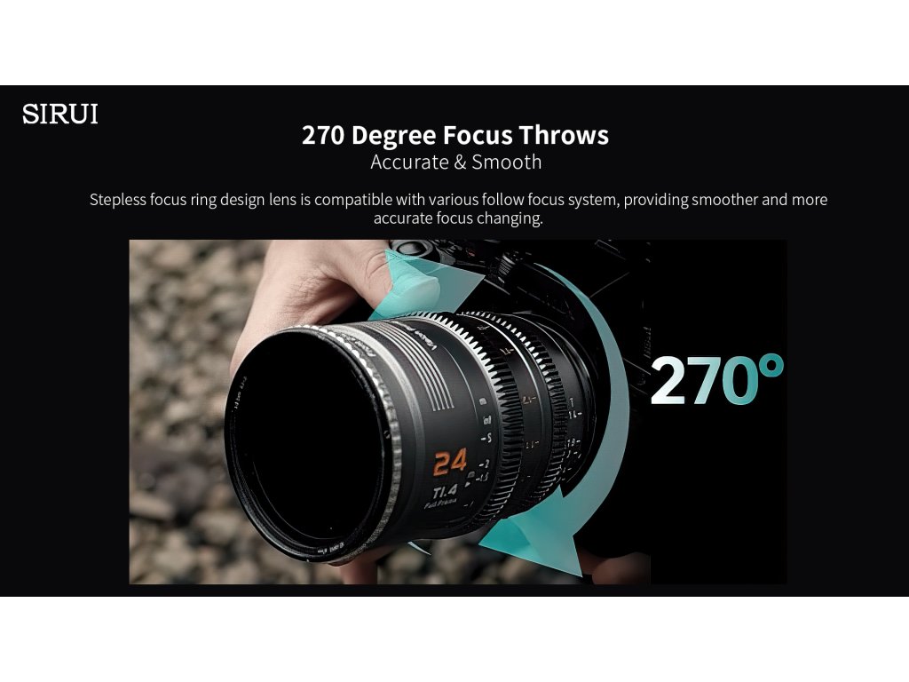 Objektív má precíznu cine mechaniku s ozubenými krúžkami pre follow focus, 270° rozsah ostrenia a 12-lamelovú clonu, ktorá zaručuje plynulé a prirodzené rozostrenie. Celokovové telo z hliníkovej zliatiny je odolné, no zároveň ľahké, čo ocenia tvorcovia pri práci s gimbalmi či menšími kamerovými rigmi.