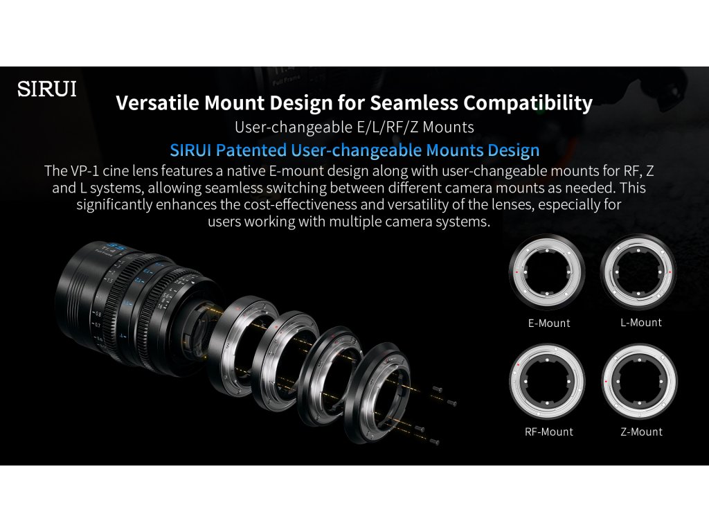 Vďaka vymeniteľnému bajonetu je kompatibilný s kamerami Sony E, Nikon Z, Canon RF a Leica L, čím ponúka maximálnu flexibilitu naprieč platformami.