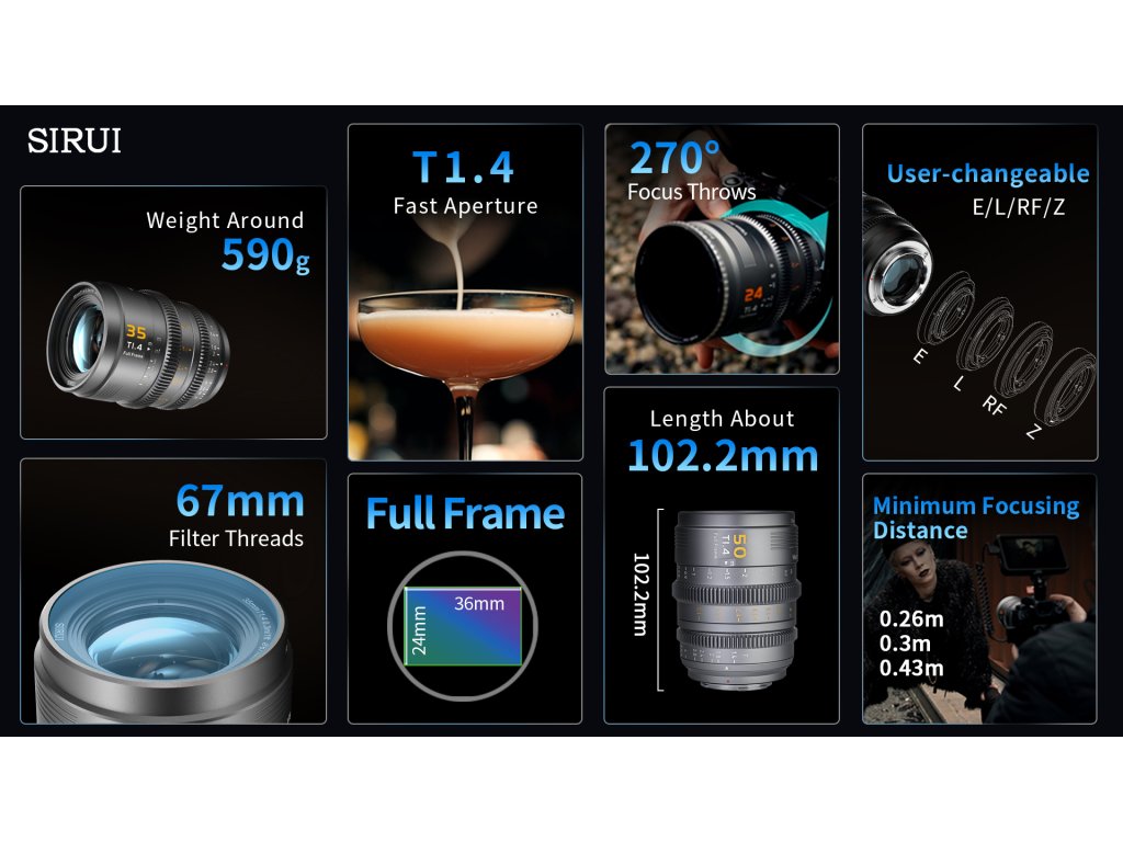 SIRUI Vision Prime 1 Series 50mm T1.4 Full Frame Cine Lens (E/Z/RF/L Interchangeable Mount)
